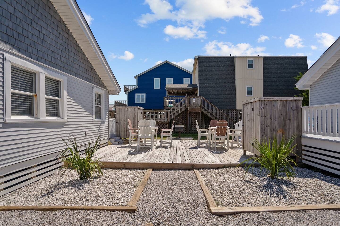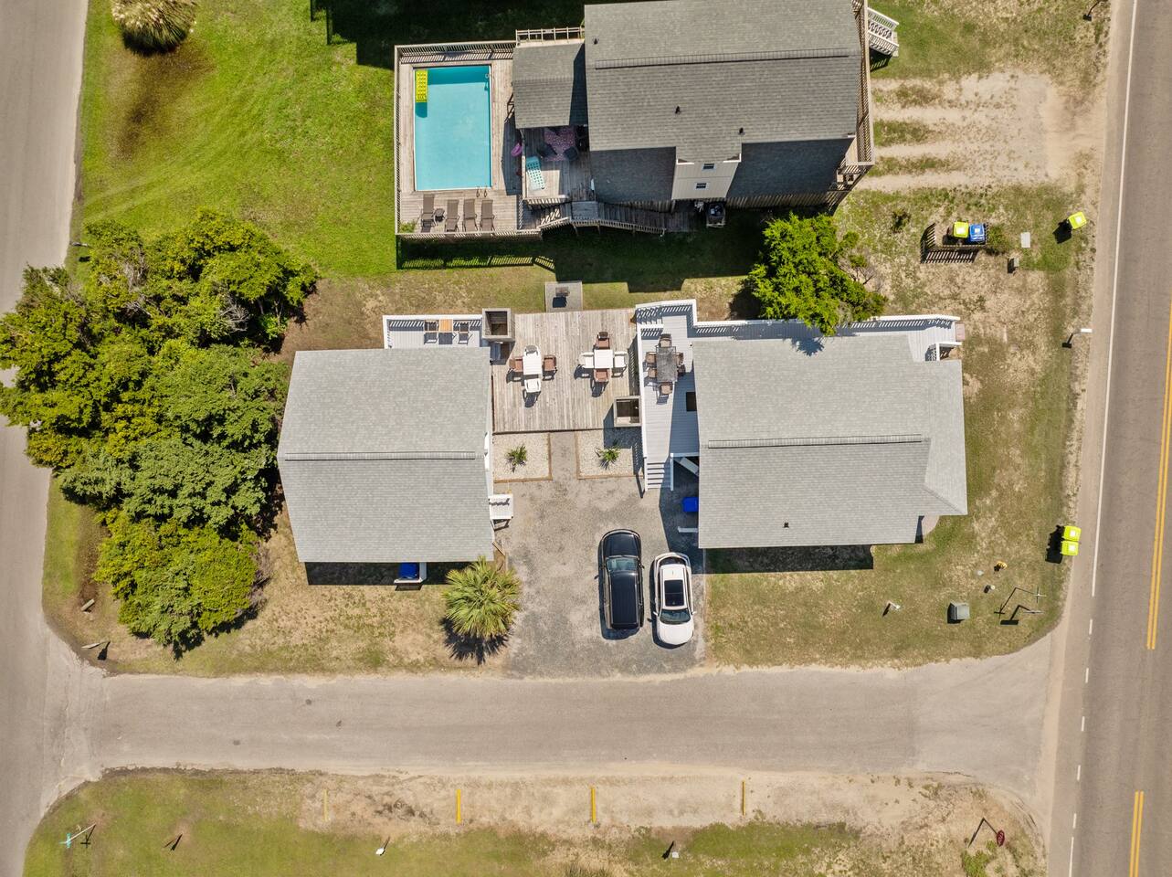 Key Features ☀ Sleeps 8 comfortably across 2 cottages ☀ 4 Bedrooms | 2 Full Bathrooms | 5 Beds ☀ 2 Queen Bedrooms + 1 Queen Bedroom + Twin Bunk Beds ☀ Beach access directly across the street ☀ Pet-friendly, up to 2 dogs per cottage with leash required ☀ Spacious screened-in porch on one cottage ☀ Large shared deck with private space for each unit ☀ High-speed WiFi in both cottages ☀ Free on-site parking ☀ Ideal for families or groups traveling together ☆ BEDROOMS ☆ With two separate cottages, your group can enjoy time together while still having space to unwind. Cottage 1 offers two main-floor bedrooms, each with a comfortable Queen bed and shared access to a full bathroom. These rooms are bright, cozy, and perfect for couples or adults seeking a peaceful retreat. Cottage 2 also features two bedrooms. One includes a Queen bed, while the second offers twin bunk beds, making it a great option for kids or additional guests. Both rooms share a full bathroom and provide a comfortable, relaxed setting after a day at the beach. This layout is ideal for multi-family stays, giving everyone their own space while staying close together. ☆ BATHROOMS ☆ Each cottage includes one full bathroom, for a total of two bathrooms across the property. Both are fully stocked with body wash, shampoo, conditioner, and essential toiletries so everyone can settle in comfortably. ☆ KITCHEN & RELAXING AREAS ☆ Each cottage has its own full kitchen, equipped with essentials including a stove and oven, microwave, full-size refrigerator, and everything needed for easy meal prep. Whether you are cooking for a crowd or keeping things simple, having two kitchens makes group stays seamless. Cottage A has a dishwasher, Cottage B does not. Both living areas feature comfortable seating, coastal décor, and high-speed WiFi, giving your group multiple spaces to relax, stream, or spend time together without feeling crowded. ☆ OUTSIDE SPACE ☆ Beach access is directly across the street, making it easy for your group to come and go throughout the day. Spend mornings on the sand, take mid-day breaks, and return for sunset without any hassle. The property features a large shared outdoor deck with dining space, designed to give each cottage its own sense of privacy while still allowing for group gatherings. One cottage also includes a spacious screened-in porch on the beach side, perfect for enjoying ocean breezes in comfort. Parking is available on-site, with space to accommodate three vehicles. ★ Book Today & Let Us Take Care Of You ★ If you are traveling with family or friends and want a setup that offers both togetherness and privacy, this dual-cottage retreat is the perfect fit. Steps from the beach, full of charm, and designed for easy coastal living, it is everything you need for a memorable Oak Island getaway. Book today and enjoy your own private beach compound just steps from the sand.